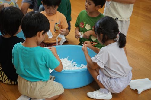1学期の終わり、風組(年長児)が合宿に行きました。風の谷の合宿には、①家族と離れ、普段とは異なる環境下でも、『自分のことは自分でやる』という意識を子どもたちが持…